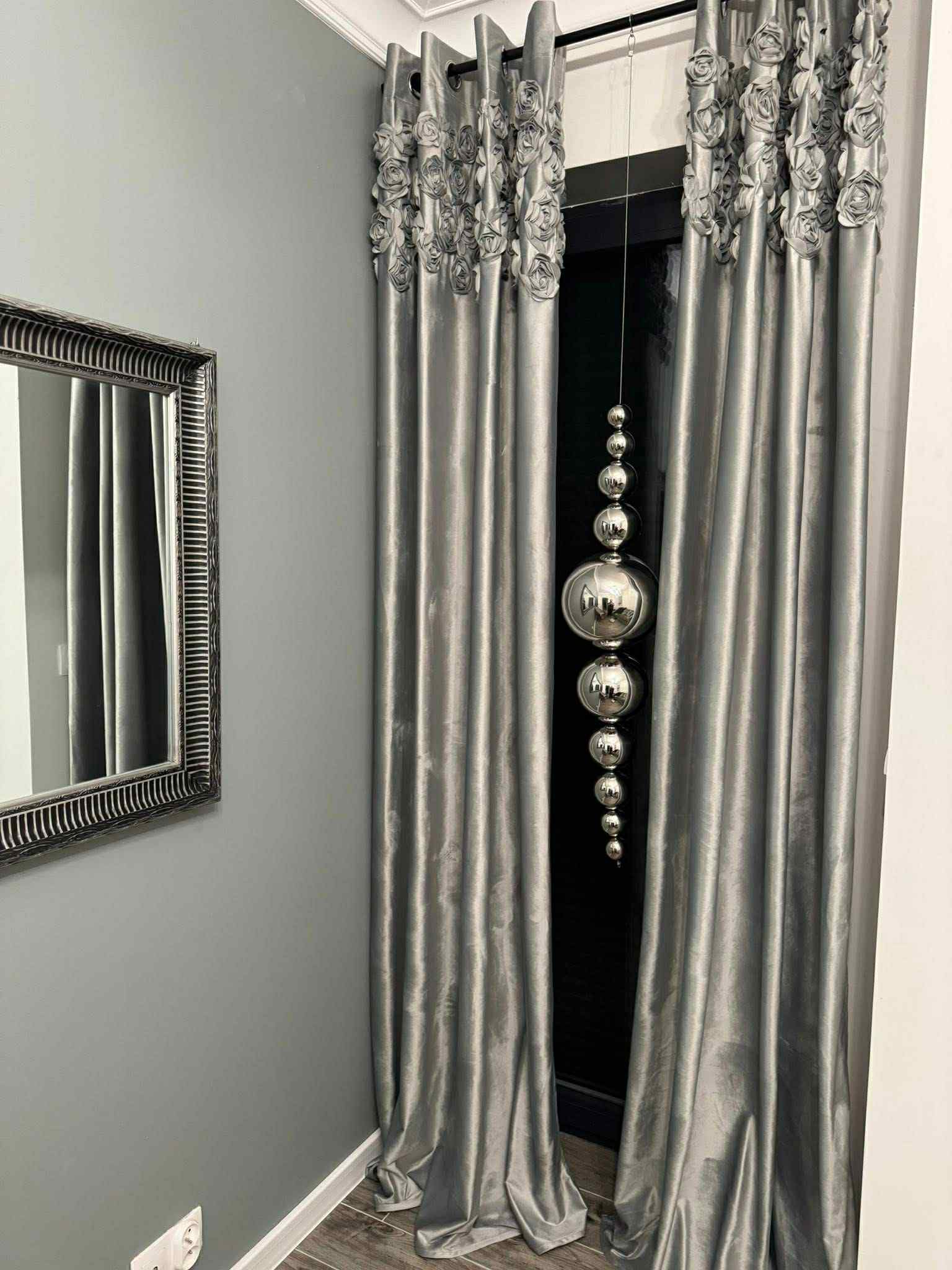 • Zasłona zaciemniająca ebru ,srebrno, czarna 140×270